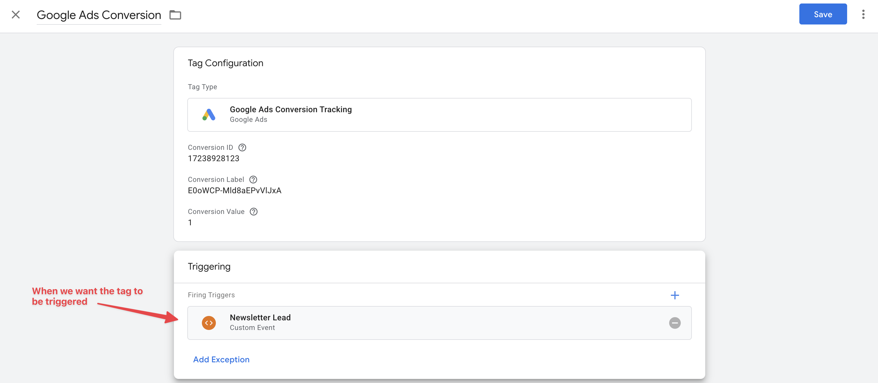 Google Ads. This means that the tag will not trigger if this condition is verified.