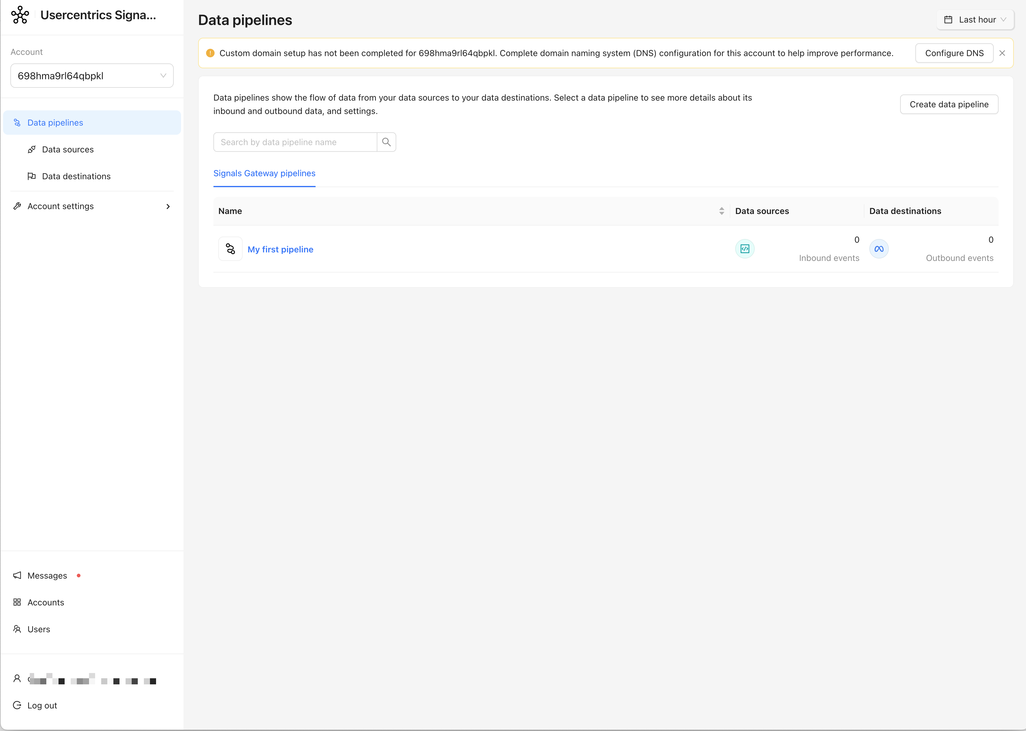 You will be taken to the Signals Gateway hub interface, and you can proceed to create your first pipeline.