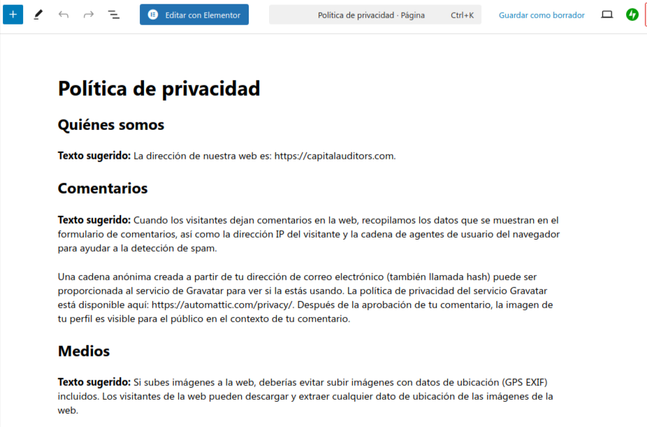 Recuerda que esta información no solo tiene que ser correcta, sino que además tiene que estar actualizada. Si creas un aviso legal en WordPress hoy, haz una revisión periódica para añadir, quitar o ajustar cualquier detalle.