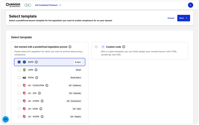 - Normativas de privacidad ilimitadas Puedes escoger tantas normativas compatibles como necesites (RGPD, LGPD, POPIA, CCPA/CPRA, VCDPA, CPA, CTDPA, UCPA)