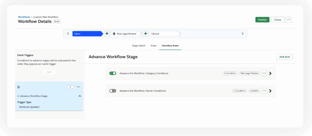 - Governance, Risk, and Compliance (GRC) workflows: Create policies and develop processes for reviews and approvals based on them.