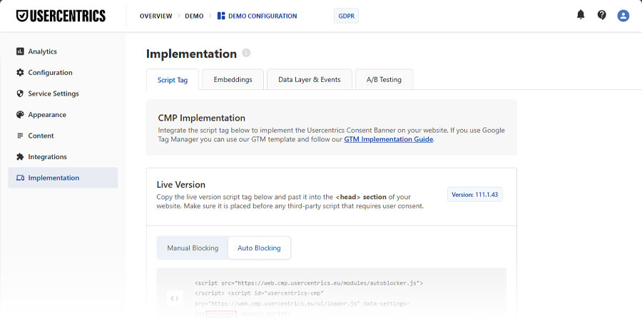 - Automated privacy compliance: Simplify your setup with automated blocking of non-essential services until user consent is obtained. Speed up the process with auto-filled Data Processing Services while enabling compliance with the GDPR, the CCPA, POPIA, and more.