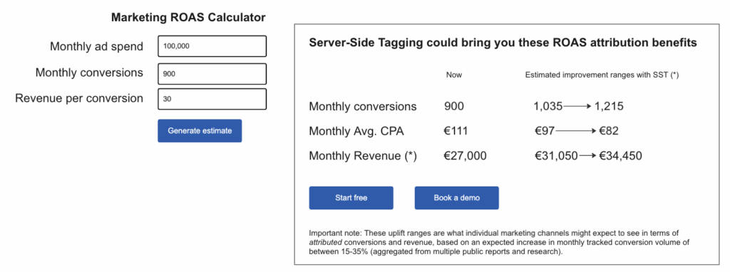Don’t just read about other company’s success stories. Try our interactive ROAS Calculator to estimate the gains your business could realize by moving to Server-Side Tagging.
