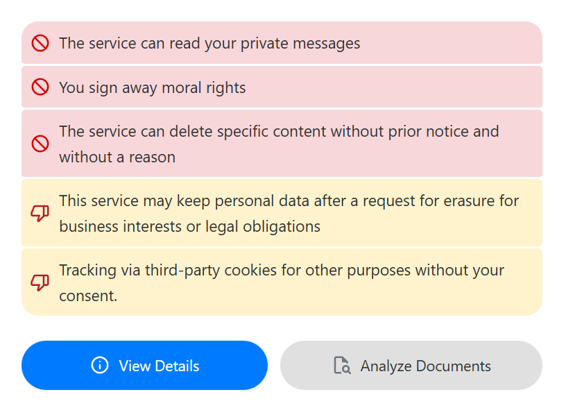 That’s because clauses that look like technicalities can, in practice, tilt the balance of power heavily toward platforms. This is exactly the kind of imbalance ToS;DR is trying to make visible.