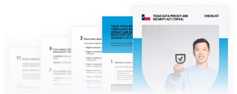 These steps will help you achieve compliance with the Texas Data Privacy and Security Act (TDPSA), which applies to and protects residents of Texas. The checklist also includes recommended best practices for data privacy-related user experience.
