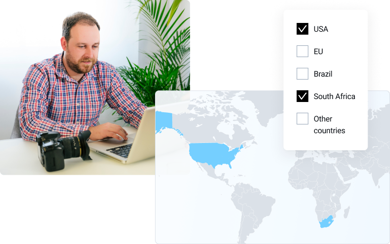 Automatically serve the right consent experience for US, EU, and global visitors (CCPA, GDPR, and 100+ frameworks) with regular automated updates and geolocation for precise language matching.
