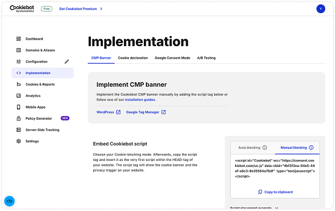 There are several easy implementation methods for the Usercentrics CMP into your website, including via a Google Tag Manager template. Read our implementation guides.